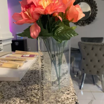 Bring a touch of sophistication and charm to your home with our Elegant Transparent Acrylic Book Vase. This unique and stylish vase, designed to resemble a book, is perfect for showcasing your favorite flowers in a modern and aesthetically pleasing way. Crafted from high-quality acrylic, this vase is not only beautiful but also durable and long-lasting, making it an ideal addition to any room.
